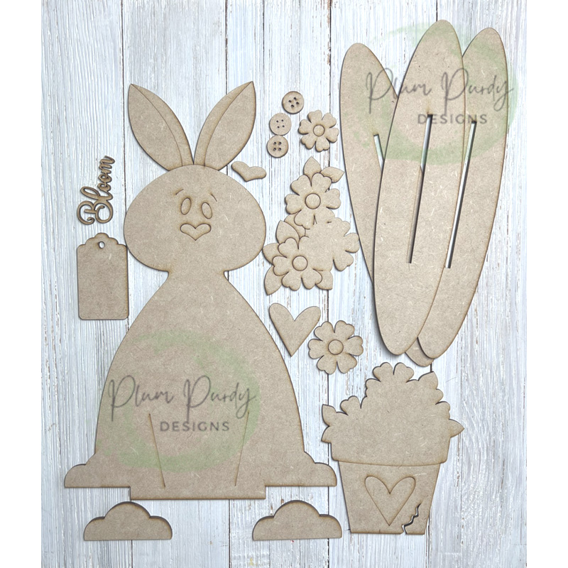 #910 Flowerpot Bunny SMALL w/feet (WOOD)