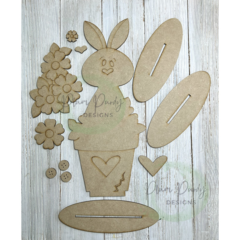 #910 Flowerpot Bunny SMALL In-Pot (WOOD)